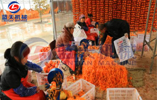 2:去皮 先折斷萼片,剪除果柄,然后用水沖洗柿果。采用不銹鋼刀具去皮,不留頂皮,花皮,僅留柿締周圍約12.5px寬的柿皮。