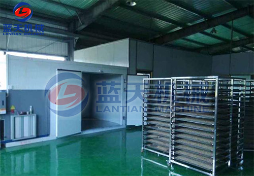 2、中濕中溫階段:溫度上升,但應(yīng)低于60℃,范圍為50-60℃,此段適當(dāng)換新風(fēng)除濕,根據(jù)濕氣多少合理調(diào)整。隨著溫度繼續(xù)升高,淮山片處于中溫中濕的狀態(tài),這時(shí)持續(xù)的溫度和循環(huán)風(fēng)將熱量均勻的送到烘房間的各個(gè)角落,山藥片持續(xù)蒸發(fā)出水汽并被排濕系統(tǒng)帶走。