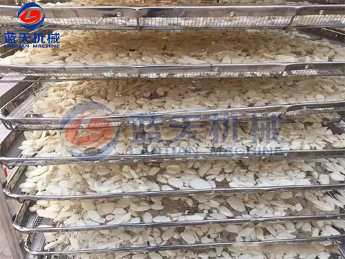 1、高濕低溫階段:溫度小于50℃,范圍為40-50攝氏度,避免高溫高濕造成山藥顏色的變化。觀察山藥表面水汽變化,淮山片的表面開始形成水汽,冷凝變成水排出烘干房外,隨時(shí)除濕,這段時(shí)間應(yīng)在3-3.5小時(shí)。