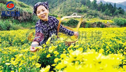 第一步——采摘,帶好竹筐,采摘金絲皇菊市注意一手夾住花瓣,一手輕輕扶助花枝,稍用力一掰,金絲皇菊便會脫落。