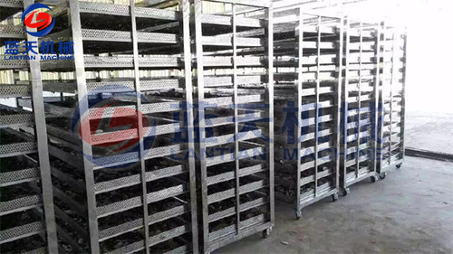 板栗烘干的預(yù)處理:新采收的板栗,水分含量高,可溶性糖含量低,特別是里面的澀皮難以剝離,如直接加工風(fēng)味不佳,并且影響產(chǎn)品質(zhì)量。經(jīng)預(yù)處理后,栗果內(nèi)的部分淀粉轉(zhuǎn)化為可溶性糖,并散失掉部分水分,相對(duì)地使可溶性物質(zhì)的含量增加,風(fēng)味轉(zhuǎn)好。處理方法是將新采收的板栗放于室內(nèi),厚度4~5cm,每天翻動(dòng)2~3次,堆放4~5d(天)即可。