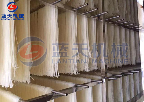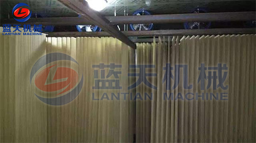 掛面烘干工藝的主要矛盾不在于溫度,在于及時排濕。面條的烘干溫度不要太高,太高了反而容易出現(xiàn)面條折斷。在有一定的風(fēng)量,風(fēng)力須足以攪動烘干房的熱空氣流動,使之掛面表面形成風(fēng)力下的蒸發(fā),進而將越來越濕的烘干房內(nèi)的空氣帶走,通過掛面烘干機內(nèi)的主機的除濕裝置進行冷凝除濕。
