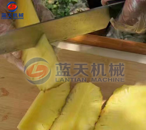第二步:菠蘿切片的過程,烘干前期切片可以切圓片,或者半圓片都可以,主要看產(chǎn)品要求。