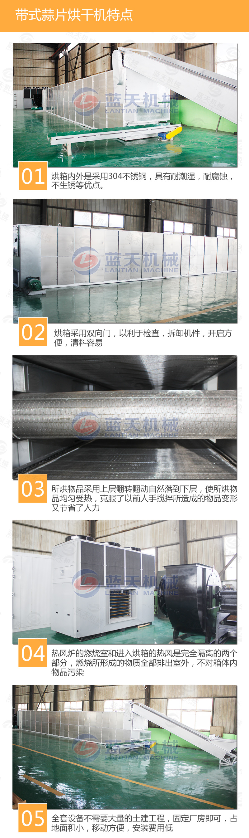 【帶式蒜片烘干機烘干蒜片步驟:】
