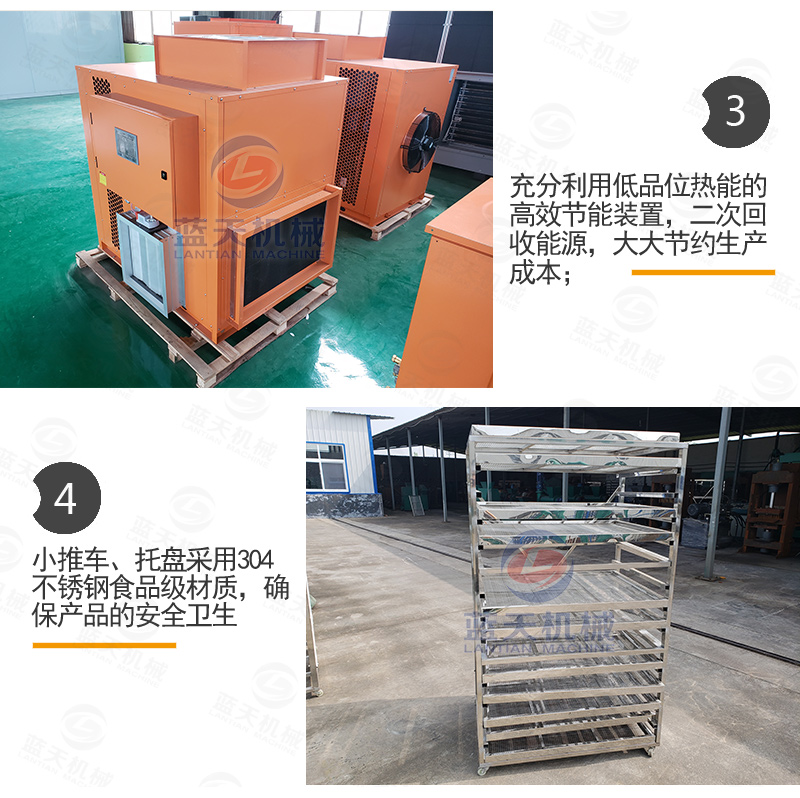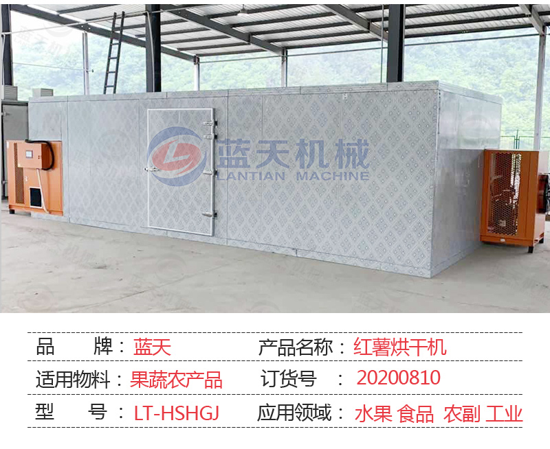 干燥烘干地瓜。干燥烘干地瓜有兩種辦法,一種是通過日曬的辦法,一般不下雨的情況下,在陽光下曬4-5天即可,要定時翻轉(zhuǎn)。另一種辦法是利用地瓜干烘干設(shè)備進行烘干地瓜,這種辦法適合量大,且不受天氣影響。開啟地瓜干烘干設(shè)備。將已經(jīng)擺好托盤的地瓜推進去地瓜干烘干機內(nèi),關(guān)閉房門。通過智能控制面板,設(shè)置好溫度和濕度,一般設(shè)置為四個階段,一階段設(shè)定45℃,定時2~3小時。二階段溫度設(shè)定50℃,定時3小時。三階段溫度設(shè)定60℃,定時3小時。四階段溫度設(shè)定70℃,定時3小時。一般用時12個小時即可。