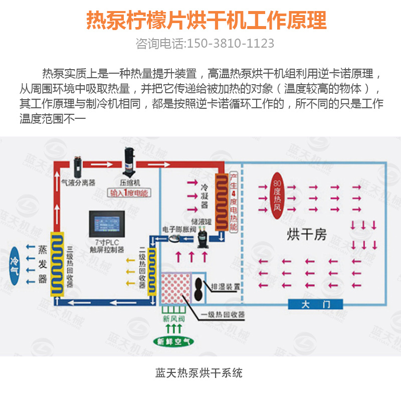 三:將檸檬片整齊的擺放在通風(fēng)的托盤上,切忌堆疊,先利用自然風(fēng)和光照使檸檬片脫去部分水分。將風(fēng)干24小時的檸檬片轉(zhuǎn)移到空氣能檸檬烘干機(jī)內(nèi),設(shè)置烘干機(jī)溫度為低溫40-50℃范圍,檸檬片的水分需在低溫干燥的過程中緩慢蒸發(fā)并排出,烘干過程約12-13小時。
