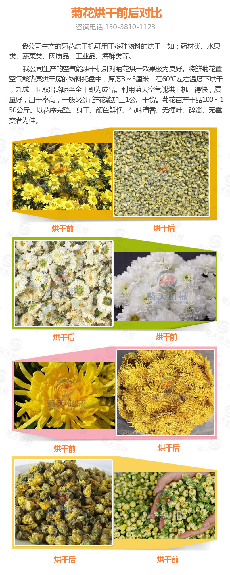 一、菊花烘干機采用熱泵烘干,符合環(huán)保需求以往有客戶采用煤加熱或其他柴加熱的烘干機來烘干菊花,這些烘干方式污染大,政府提出了以電能替代以往的燃煤、燃氣加熱的烘干機,菊花烘干機可以選用以電為熱源來烘干菊花比較合適。目前,以電為熱源的菊花烘干機設(shè)備有電加熱菊花烘干機和空氣能熱泵菊花烘干機。