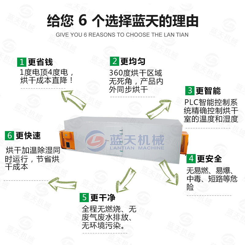 要達(dá)到以上的要求,那么烘干設(shè)備是很嚴(yán)格的。傳統(tǒng)的太陽晾曬等方法都是不合格的,海帶烘干機需要消耗少量的電就能從空氣能吸取大量的熱能使烘干房迅速升溫,同比傳統(tǒng)的烘干設(shè)備節(jié)能百分之六十以上。海帶烘干設(shè)備在常壓常溫下運行,烘干過程幾乎沒有污染物排放,不會對產(chǎn)品和環(huán)境造成污染。海帶烘干房是真正可靠的新型烘干設(shè)備。海帶烘干機烘干成本低,效率也高,提高了商家的利益,我們都知道海帶的價格是很便宜的,所以如果想要從中獲得利益,那么成本不能高,成本一高,也就掙不到什么。所以海帶烘干機是適合用來烘干海帶的。