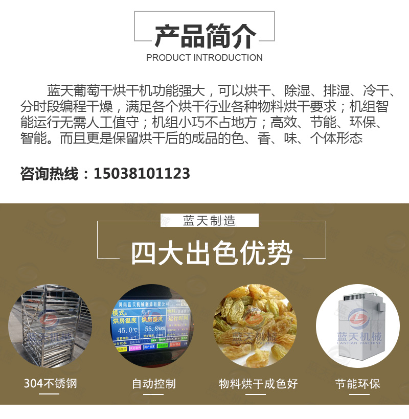 想了解葡萄干烘干機(jī)器價(jià)格的客戶,歡迎聯(lián)系我們或在線咨詢,支持到廠試機(jī)。