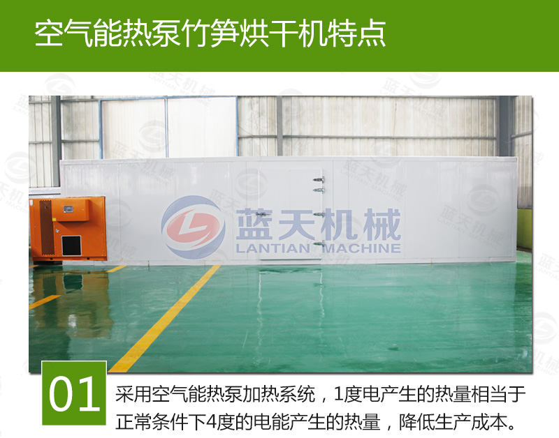 節(jié)能效率高、不受天氣限制:空氣源熱泵竹筍烘干機的運行費用只有燃油干燥機的40%,燃煤干燥機的60%和電熱加熱設備的30%,竹筍烘干機價格大大節(jié)省了烘干的成本為企業(yè)創(chuàng)造了直接的利潤。安裝竹筍烘干機只需要一塊占地不大的平地面積就可以了,安裝操作簡易 。